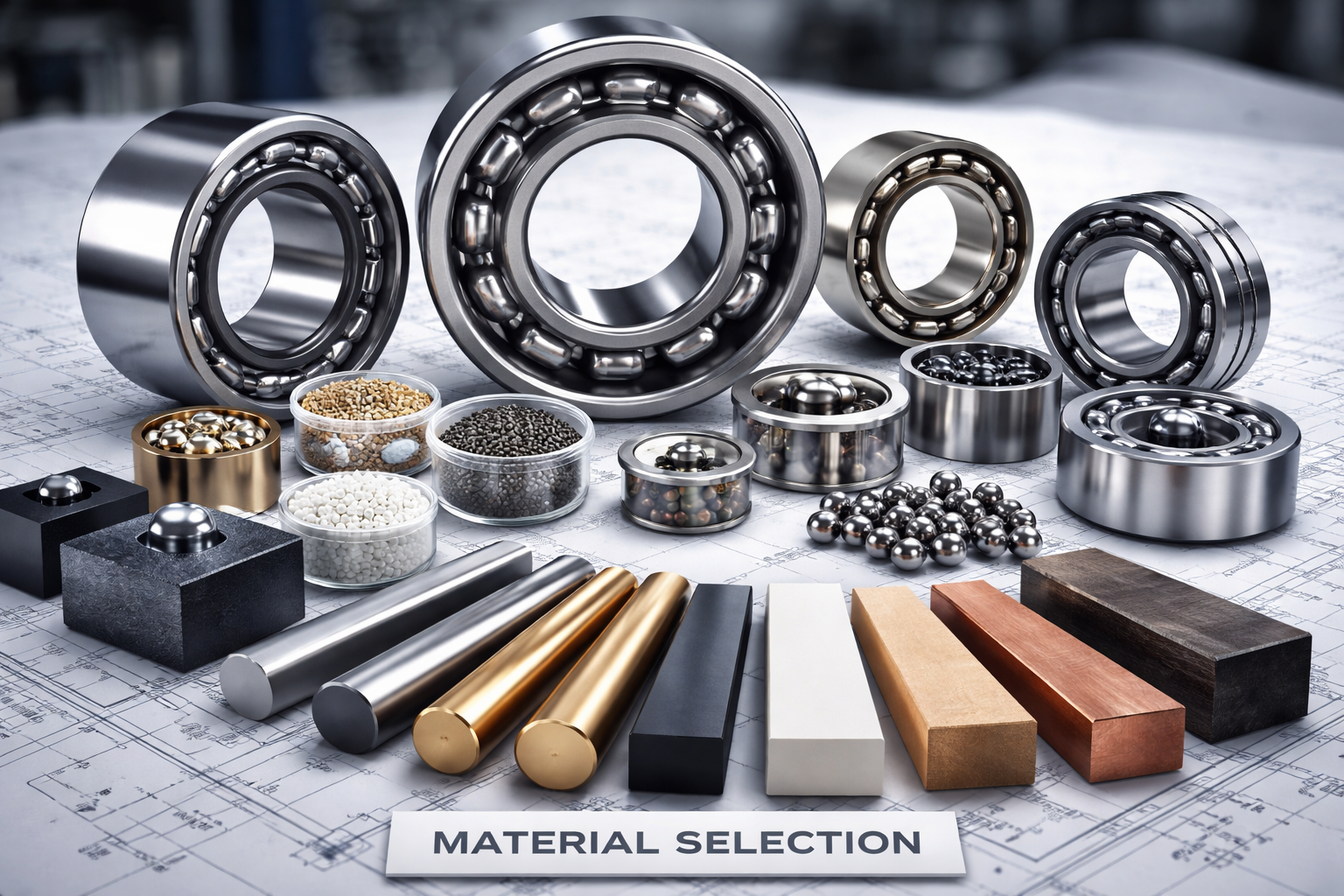 Non-metallic materials (ceramics, polymers) may be used for specialized bearings.